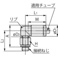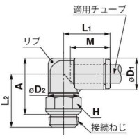 ※エルボユニオン、適用チューブ外径:φ6、接続ねじ:R1/8の場合