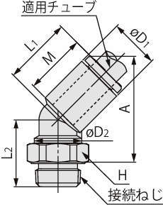 ・ねじ部からの45度方向の配管に使用。