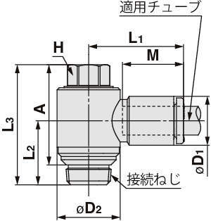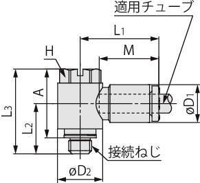 ※エルボユニオン、適用チューブ外径:φ6、接続ねじ:R1/8の場合
