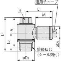 ※エルボユニオン、適用チューブ外径:φ6、接続ねじ:R1/8の場合