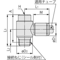 ※エルボユニオン、適用チューブ外径:φ6、接続ねじ:R1/8の場合