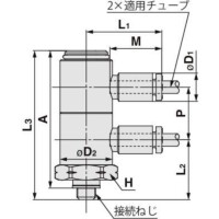 ※エルボユニオン、適用チューブ外径:φ6、接続ねじ:R1/8の場合