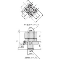 ※エルボユニオン、適用チューブ外径:φ6、接続ねじ:R1/8の場合