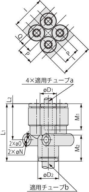 ・同一方向にサイズダウンしてチューブ同士の4分岐接続に使用。