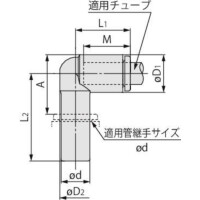 ※エルボユニオン、適用チューブ外径:φ6、接続ねじ:R1/8の場合