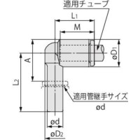 ※エルボユニオン、適用チューブ外径:φ6、接続ねじ:R1/8の場合