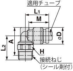 KQB2L04-01S エルボユニオン KQB2L ミリ φ4mm シール剤付 R R1/8 10 9.1 - 14.4 15.3 16.7 12.6 4.2 - 8.6
