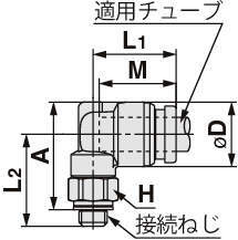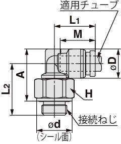 KQB2L23-M5 エルボユニオン KQB2L ミリ φ3.2mm ガスケットシール M M5×0.8 8 8.3 - 13.1 14.8 16 12 2.6 - 6.5