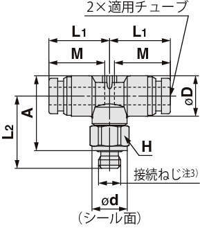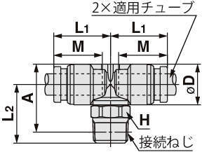 ・両側90度方向のめねじ部からの分岐配管に使用。