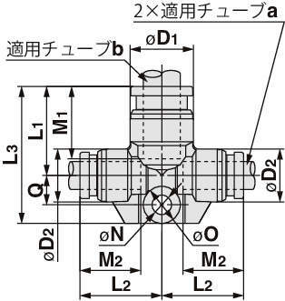 KQG2T12-16 異径チーズ KQG2T ミリ φ12mm φ16mm 24.6 18.7 26.8 26.7 39.9 9.1 20.8 18.6 4.2 8 108.5 58
