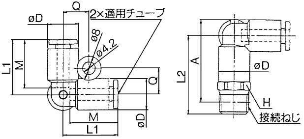 型式 機種 タイプ 適用チューブ 管接続部 ねじ部材質 六角対辺