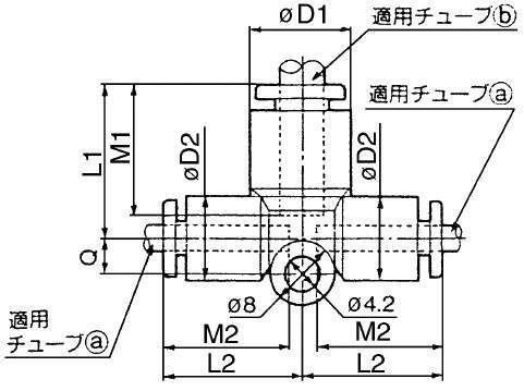 ・両側90度方向にサイズダウンして分岐するチューブ同士の接続に使用。