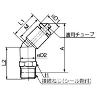 KRK08-02SW2 45°エルボユニオン KRK-W2 ミリ φ8mm シール剤付 R R1/4 14 15.2 12 20.5 25.5 18.5 19.7 19.7 21 -