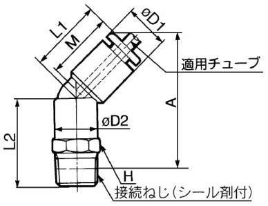 ・めねじ部からの45度方向の配管に使用。