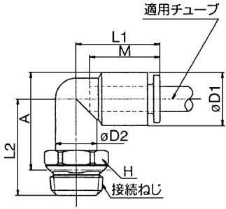 ・めねじ部からの直角方向の配管に使用。