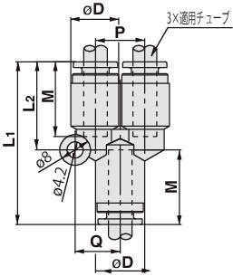 ・同一方向のチューブ同士の分岐接続に使用。