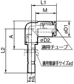 ・相手チューブカプラから直角方向の配管に使用。