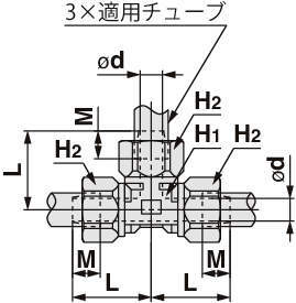 ・両側90度方向のチューブ同士の分岐接続に使用。
