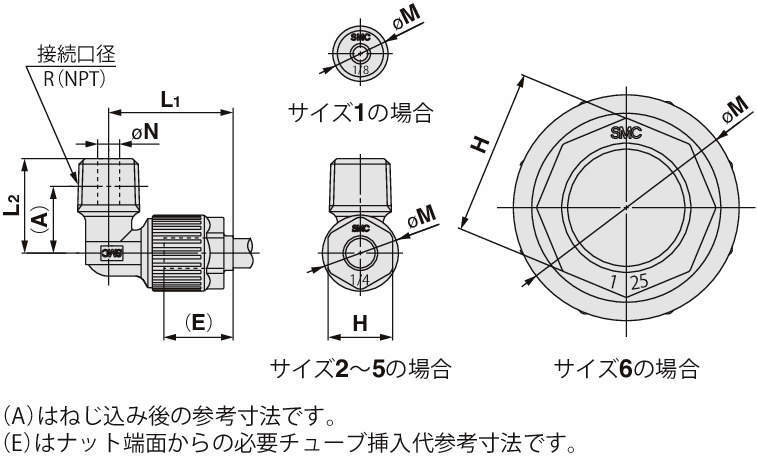 型式 機種 タイプ サイズ 適用チューブ 配管接続 A