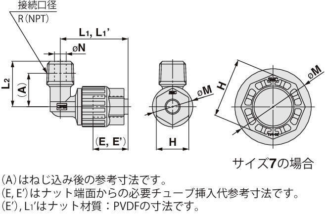 | 使用温度 | PFA製ナット:0~200℃ PVDF製ナット:0~150℃ |