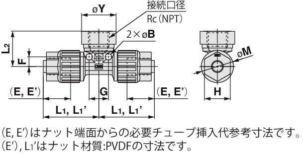 | 使用温度 | PFA製ナット:0~200℃ PVDF製ナット:0~150℃ |