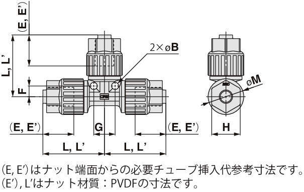 | 使用温度 | PFA製ナット:0~200℃ PVDF製ナット:0~150℃ |