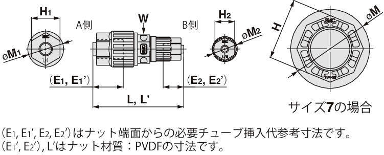 | 使用温度 | PFA製ナット:0~200℃ PVDF製ナット:0~150℃ |