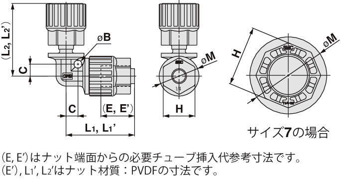 | 使用温度 | PFA製ナット:0~200℃ PVDF製ナット:0~150℃ |