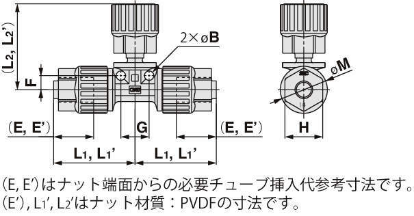 | 使用温度 | PFA製ナット:0~200℃ PVDF製ナット:0~150℃ |