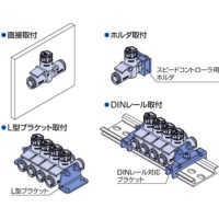 ・直接取付、ホルダ取付、DINレール取付、L型ブラケット取付。