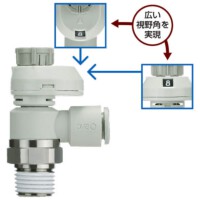 ・面当てストッパ(回転ストッパ)の採用により全閉 時(流量0)のハンドル 位置が常に一定。