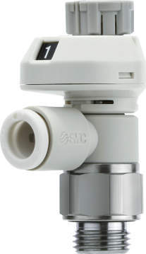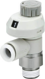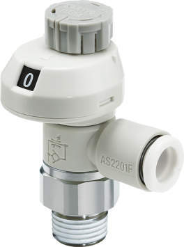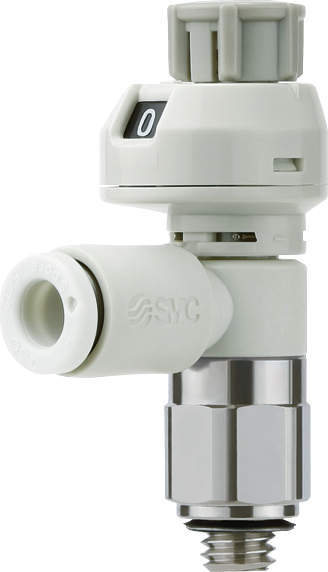 目盛付・ワンタッチ管継手付スピードコントローラ(プッシュロック式・ステンレス仕様) エルボタイプ AS-FSG