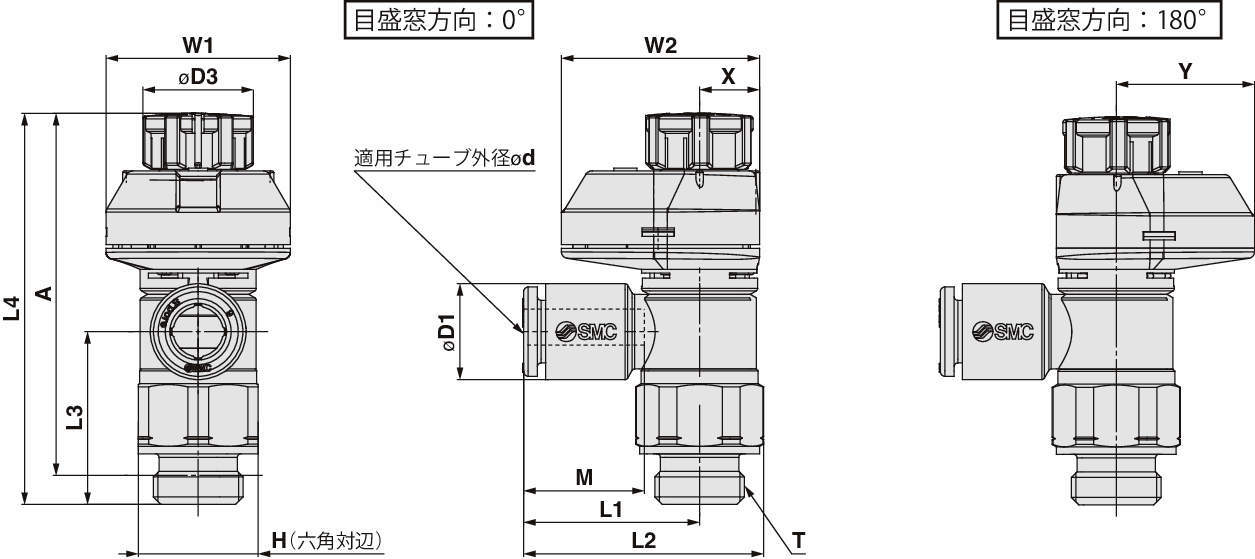 • 目盛窓方向:90°