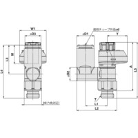 AS1301FSG1-M5-03 AS-FSG ユニバーサル 1 メータアウト 180° インチ φ5/32" ガスケットシール M M5×0.8 0.3 0.3 0.4 0.2 1MPa 0.1MPa 1.5MPa 8 8.2 9.4 9.4 11.6 19.8 17.5 33.8 39 36.5 35 33.5 13.3 13.6 9.6 7 -