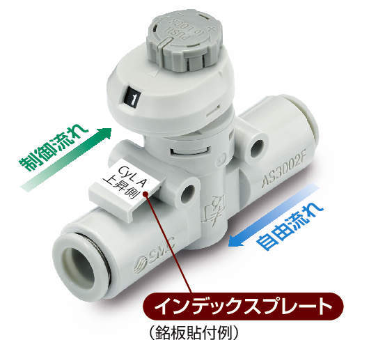 ・識別銘板を貼付けることで多数取付時の識別および流れ向きの識別が可能。