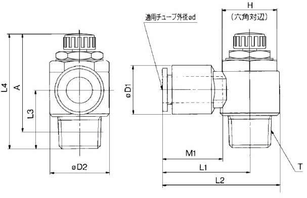 タイプ 外径 φd シール方式 ねじタイプ 接続口径 T 自由流れ 制御流れ 自由流れ 制御流れ 自由流れ 制御流れ MAX. MIN. MAX. MIN.