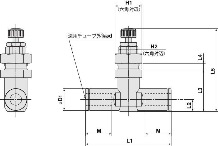 適用チューブ | 流量(L/min(ANR)) | C値:音速コンダクタンス(dm3/(s・bar)) | b値:臨界圧力比 |