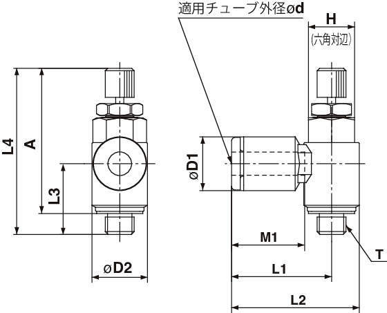・制御流れの音速コンダクタンスは、標準品の約1/10となっていますので、10~50mm/sの低速シリンダの速度制御用に最適です。