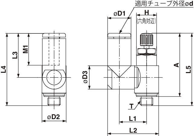 ・制御流れの音速コンダクタンスは、標準品の約1/10となっていますので、10~50mm/sの低速シリンダの速度制御用に最適です。