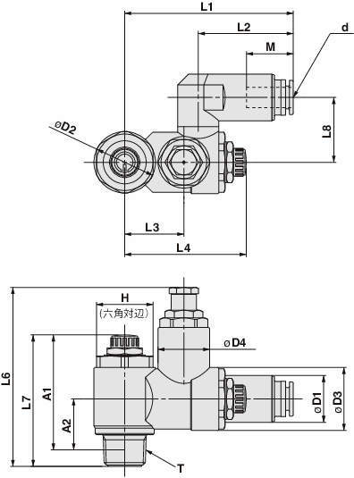 ・ボディおよびワンタッチ管継手部は360°回転可能。