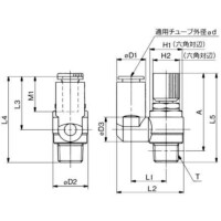 | タイプ | 外径 φd | シール方式 | ねじタイプ | 接続口径 T | 自由流れ | 制御流れ | 自由流れ | 制御流れ | 自由流れ | 制御流れ | MAX. | MIN. | MAX. | MIN. | ||||||||||||||||||||||
