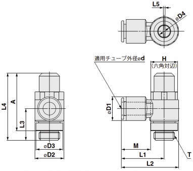 タイプ 外径 φd シール方式 ねじタイプ 接続口径 T 自由流れ 制御流れ 自由流れ 制御流れ