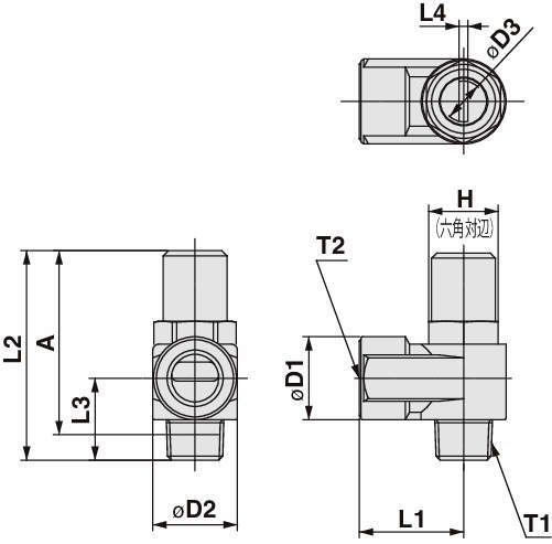 | AS2200-N01-ST | AS-T | エルボ | 2 | メータアウト | シール剤付 | NPT×NPT | NPT1/8 | NPT1/8 | 230 | 230 | 0.7 | 0.7 | 0.2 | 0.25 | 1MPa | 0.1MPa | 1.5MPa | 12.7 | 14.3 | 14.6 | 7 | 18 | 34.7 | 13.2 | 1.5 | 31.6 | 33 |