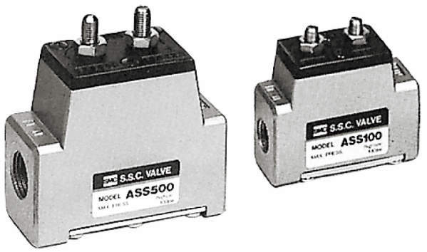 ・シリンダの速度制御機能と固定絞りおよび急速給気機能を持つ制御弁。