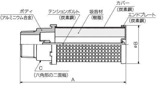 38dB(A)高消音サイレンサ(おねじタイプ) ANB1