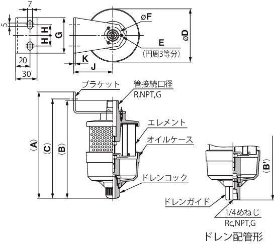 | ねじタイプ | 接続口径 | E | F | G | H | J | K | |||||||||||||||||||