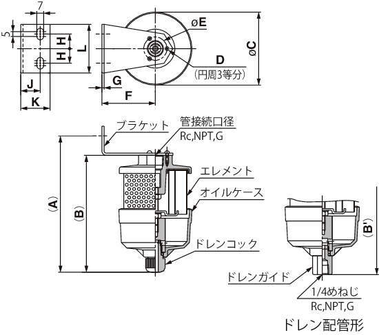 | AMC220-02BD | AMC220 | 2 | Rc | Rc1/4 | 0.1MPa以下 | 35dB(A)以上 | 99.9%以上 | 0.3μm(捕集効率95%) | 12 | 2.4 | 200 | ドレン配管形 | ブラケット付(BE20) | 100 | 88 | 91 | 56 | M3×0.5 深さ8 | 22 | 40 | 2.3 | 15 | 12 | 20 | 50 | 0.12 | AMC-EL2 |