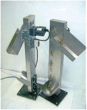 独自発想の側面吸着式シンプル機構。ベルトレスで垂直に磁性体部品等を搬送供給するコンパクト設計のマグネットコンベヤー