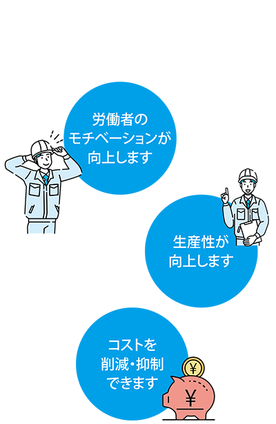 未然に防ぐ安全対策への取組みは、 従業員を守るだけでなく様々なメリットがうまれます!