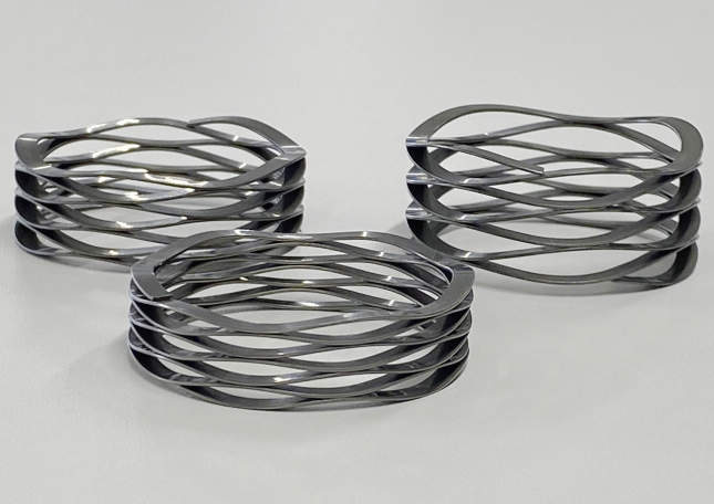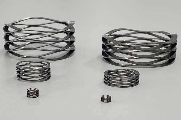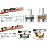 ・通常の圧縮ばねよりも荷重を強力にすることができ、取り付け高さの省スペース化が可能です。製品の小型化に貢献します